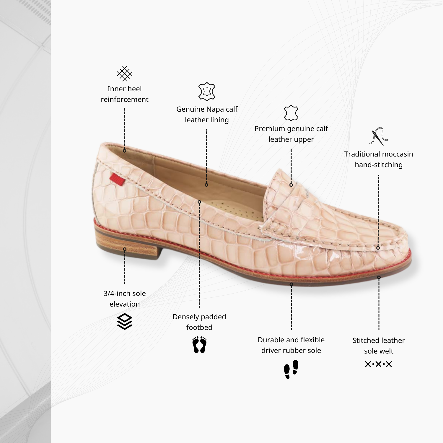 • Handcrafted with signature moccasin hand-stitching