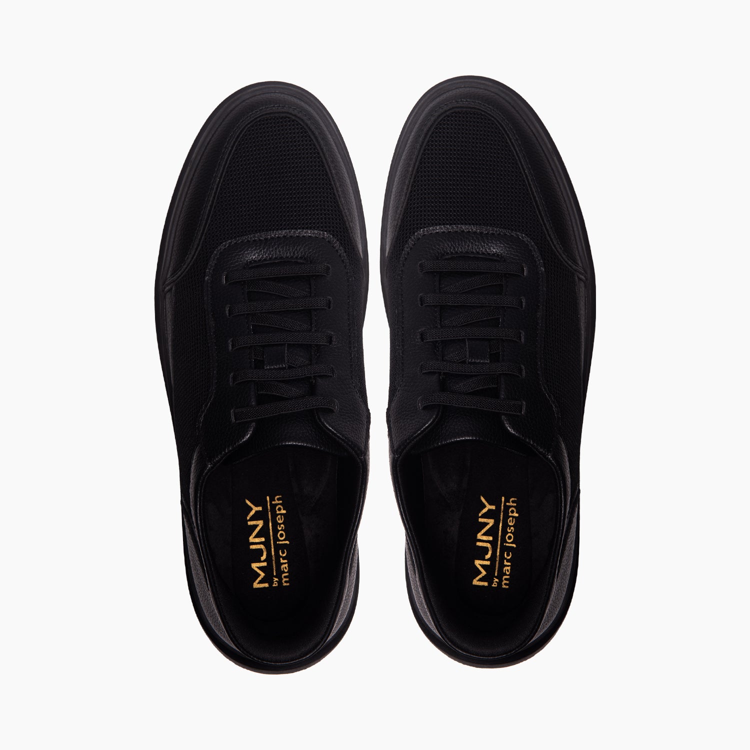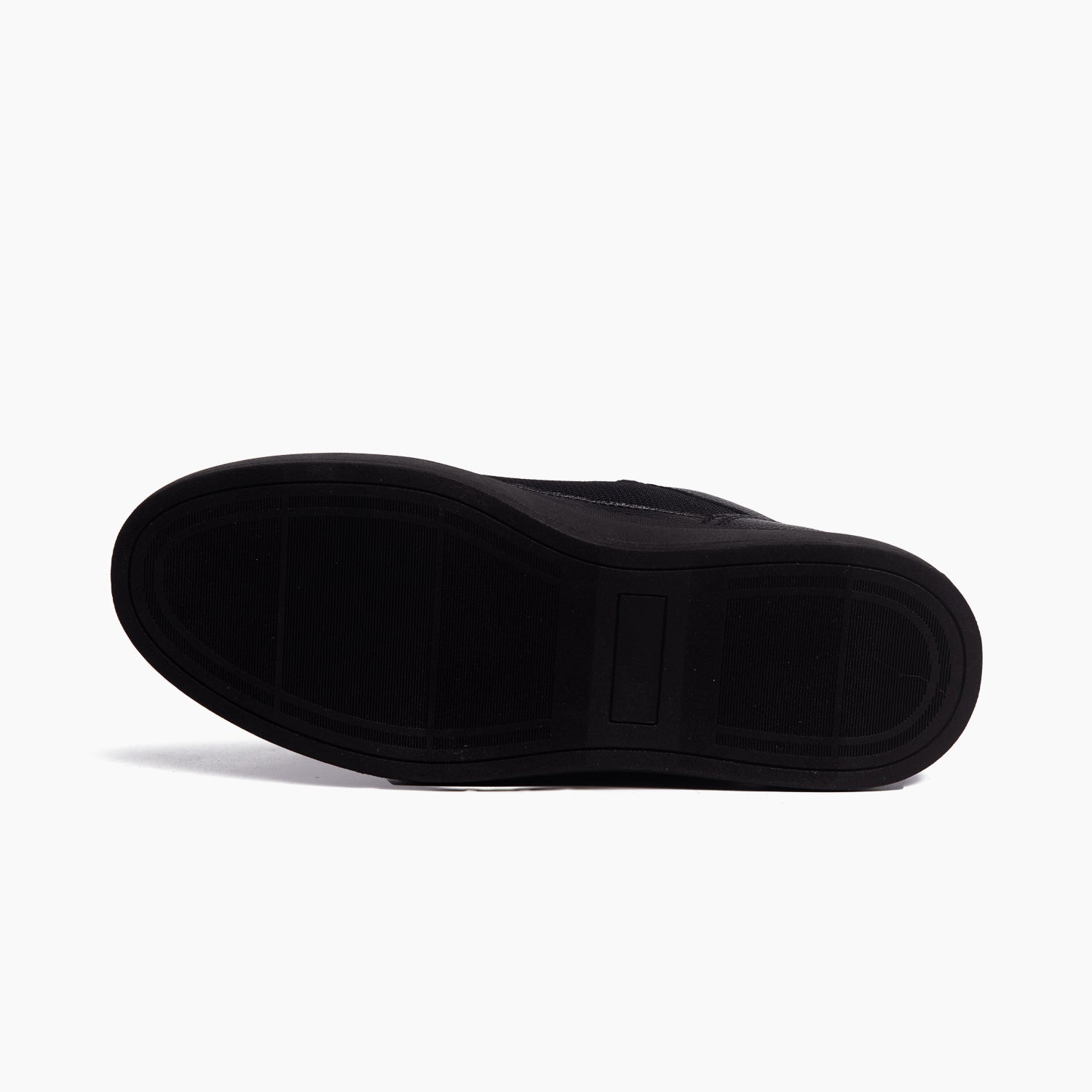 The 'Hudson St' brings a refined edge to everyday movement, pairing a sleek all-black profile with breathable mesh panels and a clean, modern silhouette. Designed with handsfree convenience, it slips on with ease while the elastic lace system delivers a secure, tailored fit without effort. The tonal finish and subtle texture elevate its understated look, making it equally suited to travel, city wear, and polished casual dressing. A supportive sole and thoughtfully crafted construction offer lasting comfort, lightness, and versatility for men who expect style and performance in equal measure.