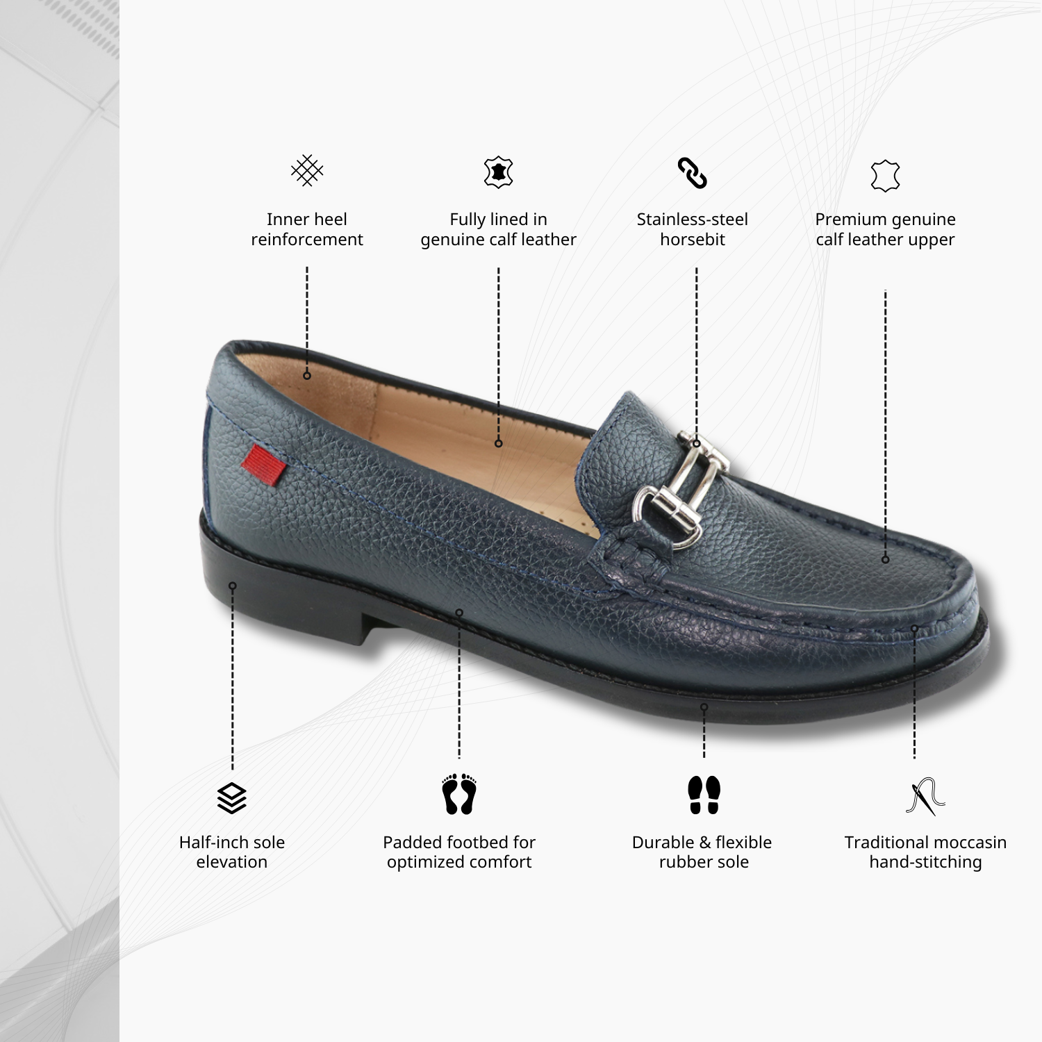 • Luxurious and durable, the genuine Calf leather upper exudes sophistication
