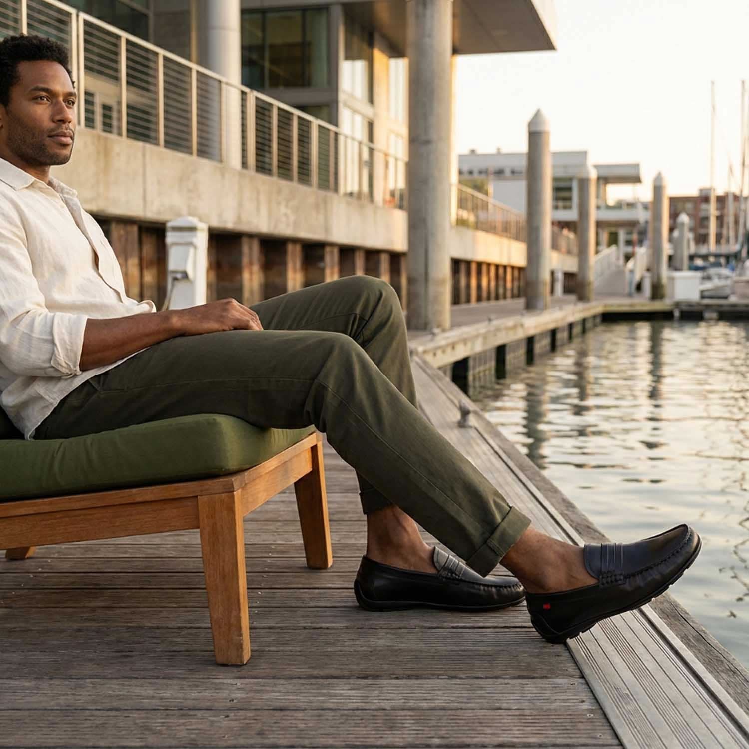 The 'Howard St' blends timeless moccasin craftsmanship with modern refinement, making it a standout choice for the discerning gentleman. Featuring genuine calf leather both inside and out, this loafer showcases an elegant band detail and hand-stitched apron that evoke understated confidence. The low-profile silhouette and sleek finish make it equally suited for tailored workwear or relaxed sophistication on weekends. Flexible and breathable, yet undeniably polished, the 'Howard St' delivers a precise balance of comfort and class—designed for men who appreciate meticulous detail in every step.