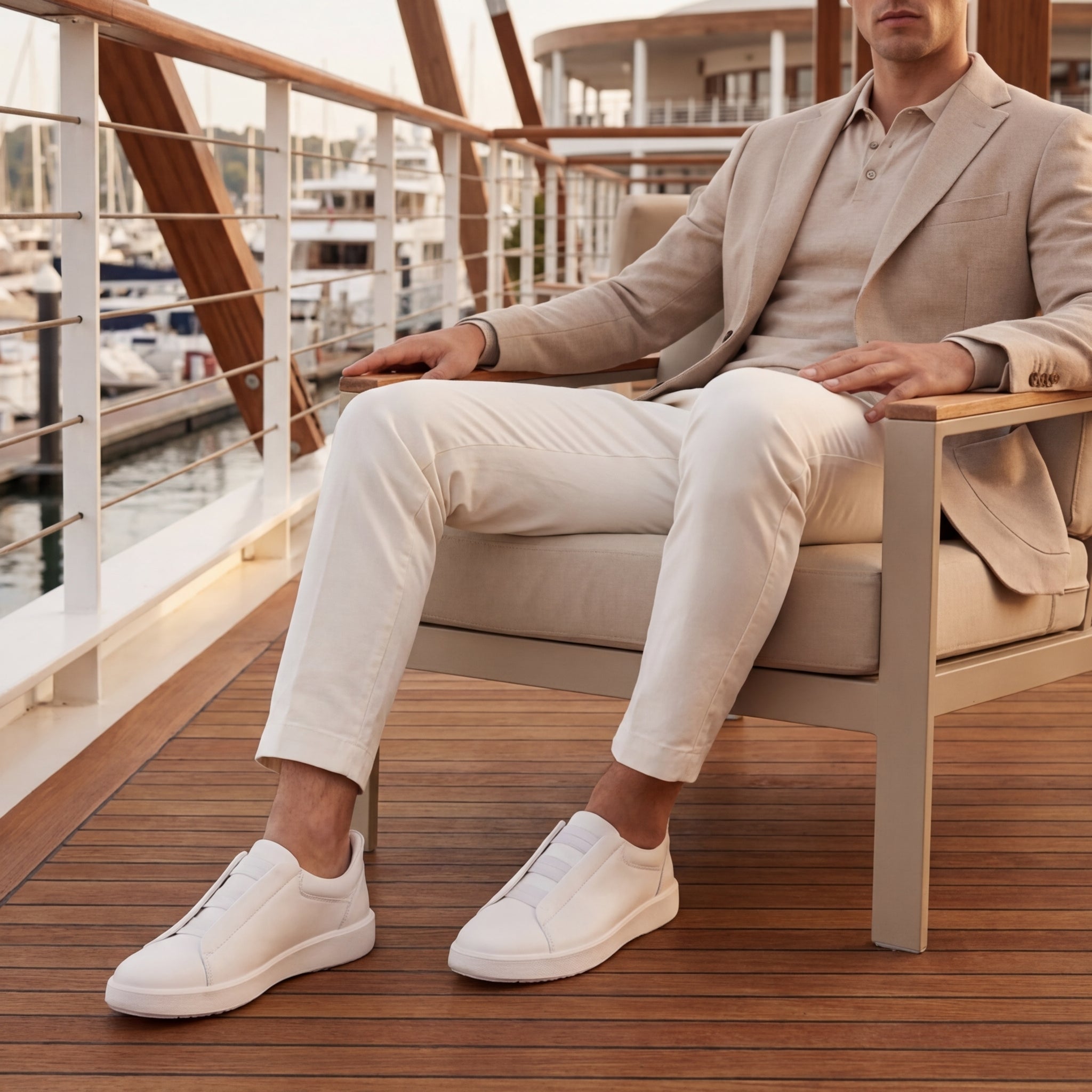The 'Allen St' strips away the unnecessary and delivers pure, thoughtful design. With a Hands-Free (Patent pending) construction, sliding in is effortless—no laces, no interruptions. The elastic band across the upper offers a snug, adaptive fit that flexes naturally with your stride, while the featherlight sole absorbs impact for all-day comfort. Wrapped in genuine calf leather, it’s a refined slip-on that pairs understated style with performance-driven ease. Clean, sleek, and made to move—this is simplicity done exceptionally well.