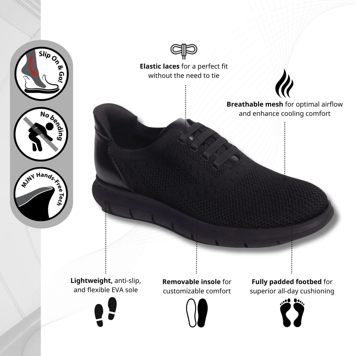 Step into effortless sophistication with the Victory St sneaker, where cutting-edge innovation meets timeless design. Featuring Hands-Free Technology (Pending Patent) and elastic laces, these sneakers deliver a secure, hands-free fit—no bending, no tying, just pure convenience. The breathable knit upper, paired with premium accents, adds a modern edge to your wardrobe. Engineered with a lightweight, anti-slip EVA sole, the Victory St provides supreme flexibility and a weightless feel, ensuring all-day comfort. Whether you're conquering the day or embracing casual downtime, these sneakers move seamlessly with you in style and confidence.