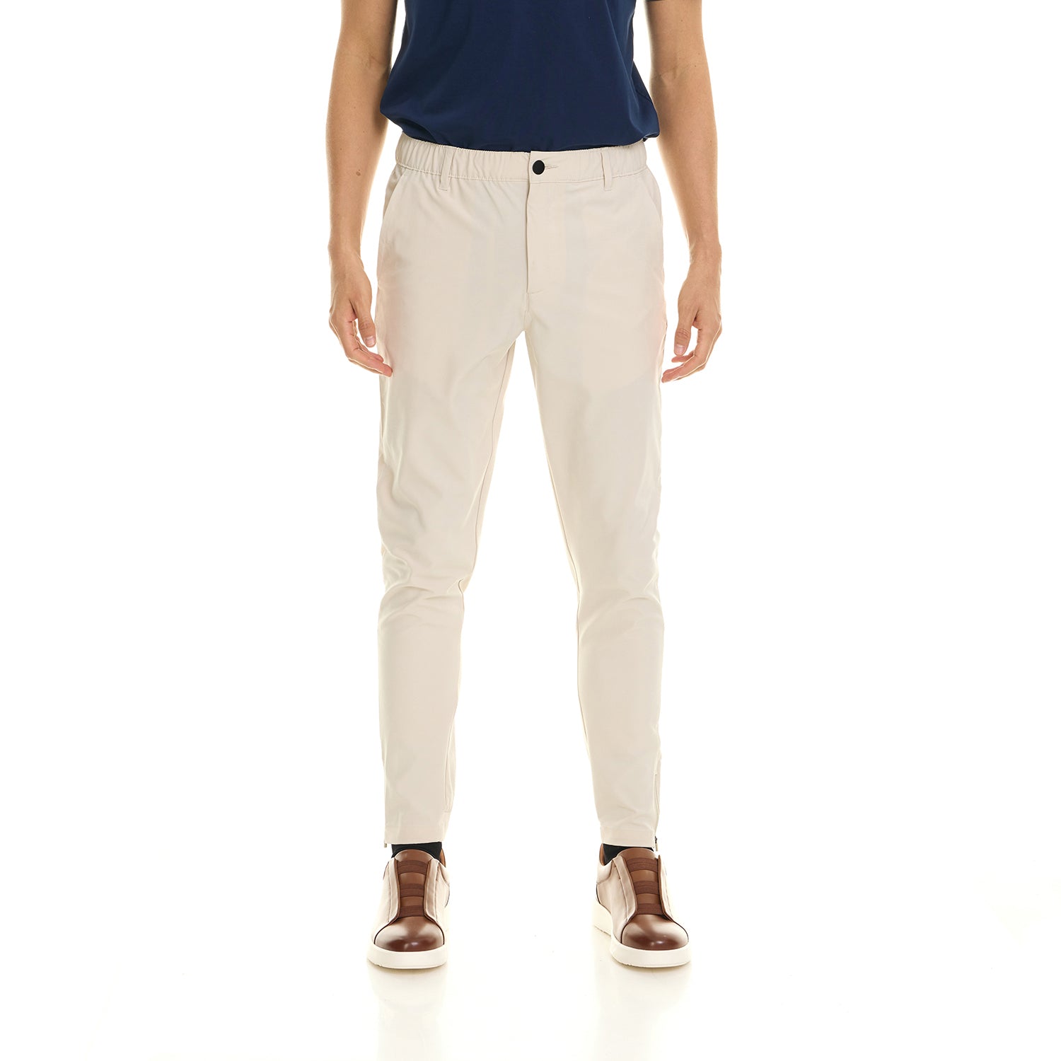 Designed for men who expect performance without sacrificing polish, this pant combines the comfort of activewear with the appearance of a modern tailored trouser. Its clean silhouette, tapered fit, and smooth technical fabric create a refined look suitable for travel, golf, or everyday wear. The ultra-light, four-way stretch material moves naturally with the body, while discreet functional details like hidden zip pockets and an elastic comfort waistband make it as practical as it is versatile.