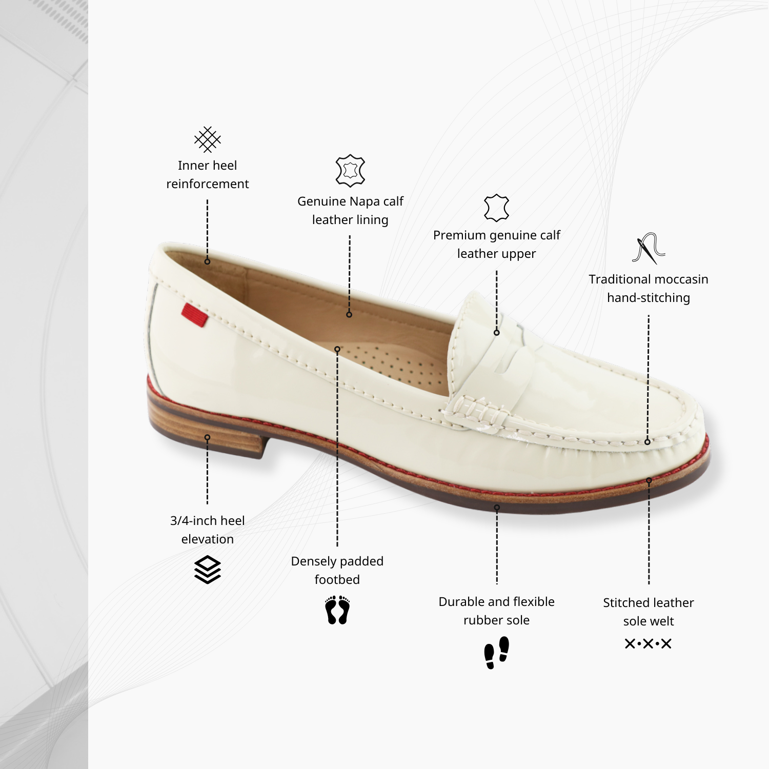 • Hand-stitched leather sole-welt