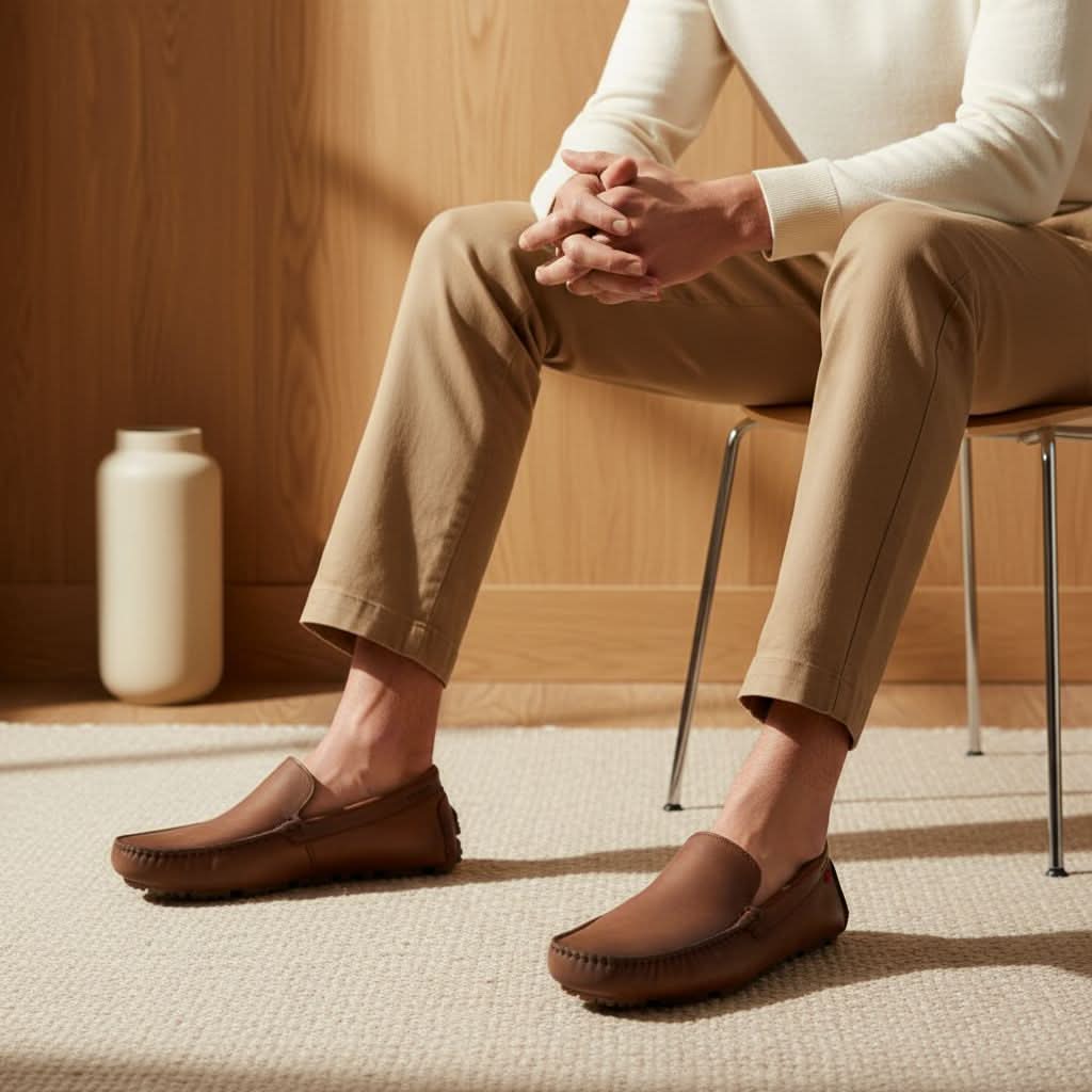 Elevate your casual footwear collection with the handcrafted 'Ovington Ct' moccasin loafer, a perfect fusion of timeless style and modern comfort. Featuring a genuine calf leather upper and lining, this Venetian loafer embodies luxury and sophistication. The meticulously crafted driver sole, equipped with ergonomic tread patterns, delivers exceptional flexibility and grip, ensuring comfort for all-day wear. Whether you're navigating city streets or stepping into a weekend getaway, the 'Ovington Ct' offers unparalleled comfort and effortless style, appealing to discerning men who value both craftsmanship and design in their footwear.