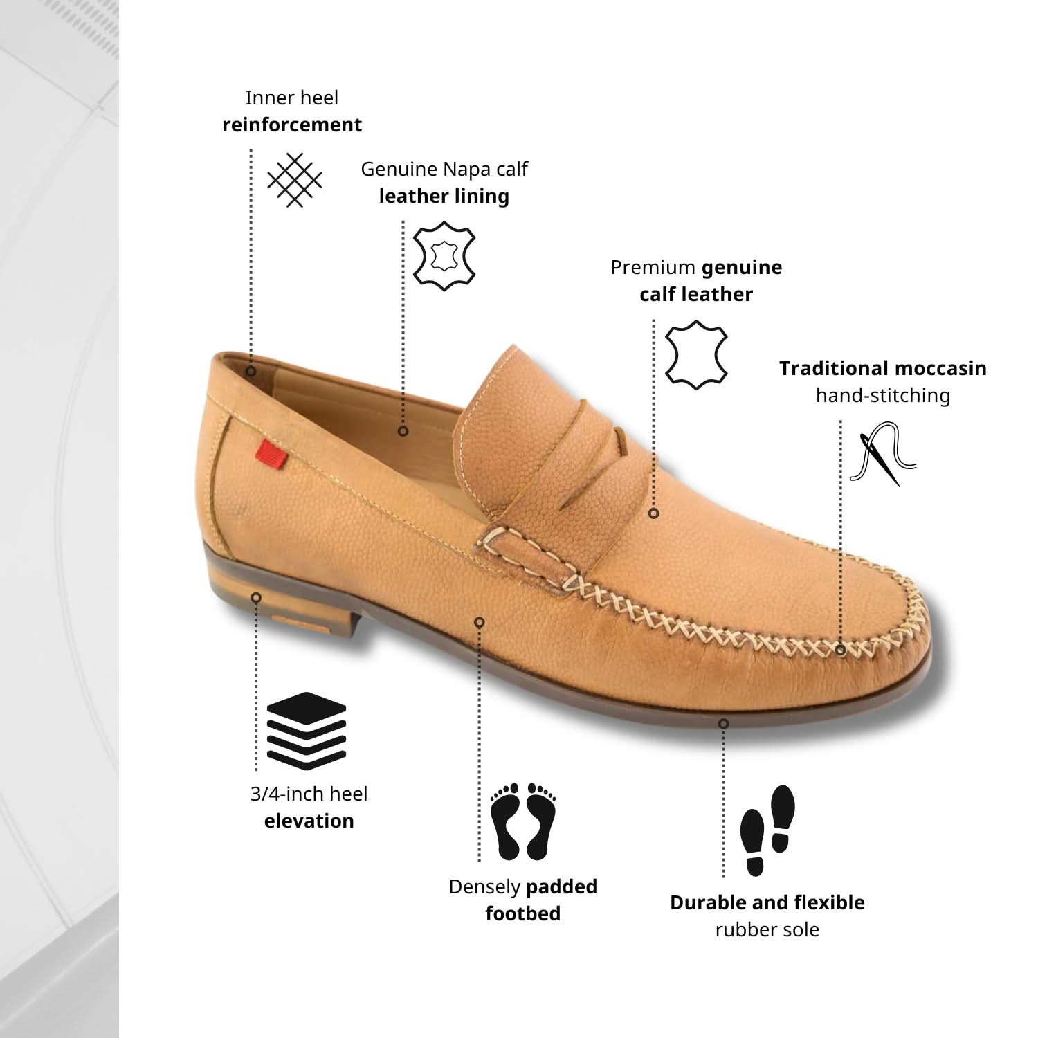 • 3/4-inch heel elevation