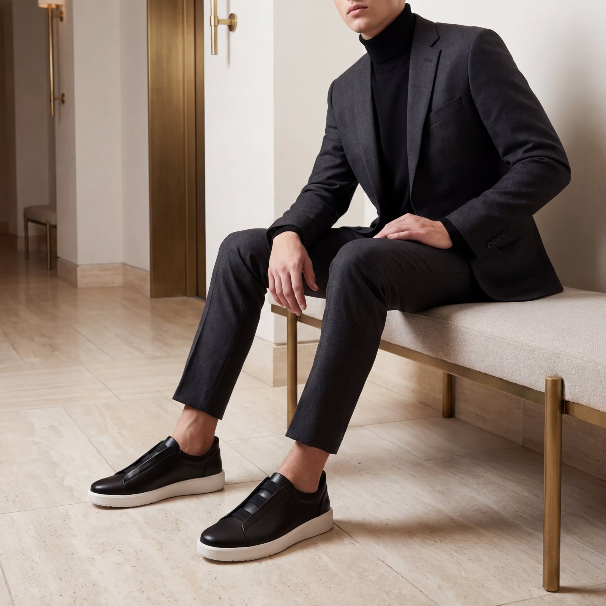 The 'Allen St' strips away the unnecessary and delivers pure, thoughtful design. With a Hands-Free (Patent pending) construction, sliding in is effortless—no laces, no interruptions. The elastic band across the upper offers a snug, adaptive fit that flexes naturally with your stride, while the featherlight sole absorbs impact for all-day comfort. Wrapped in genuine calf leather, it’s a refined slip-on that pairs understated style with performance-driven ease. Clean, sleek, and made to move—this is simplicity done exceptionally well.