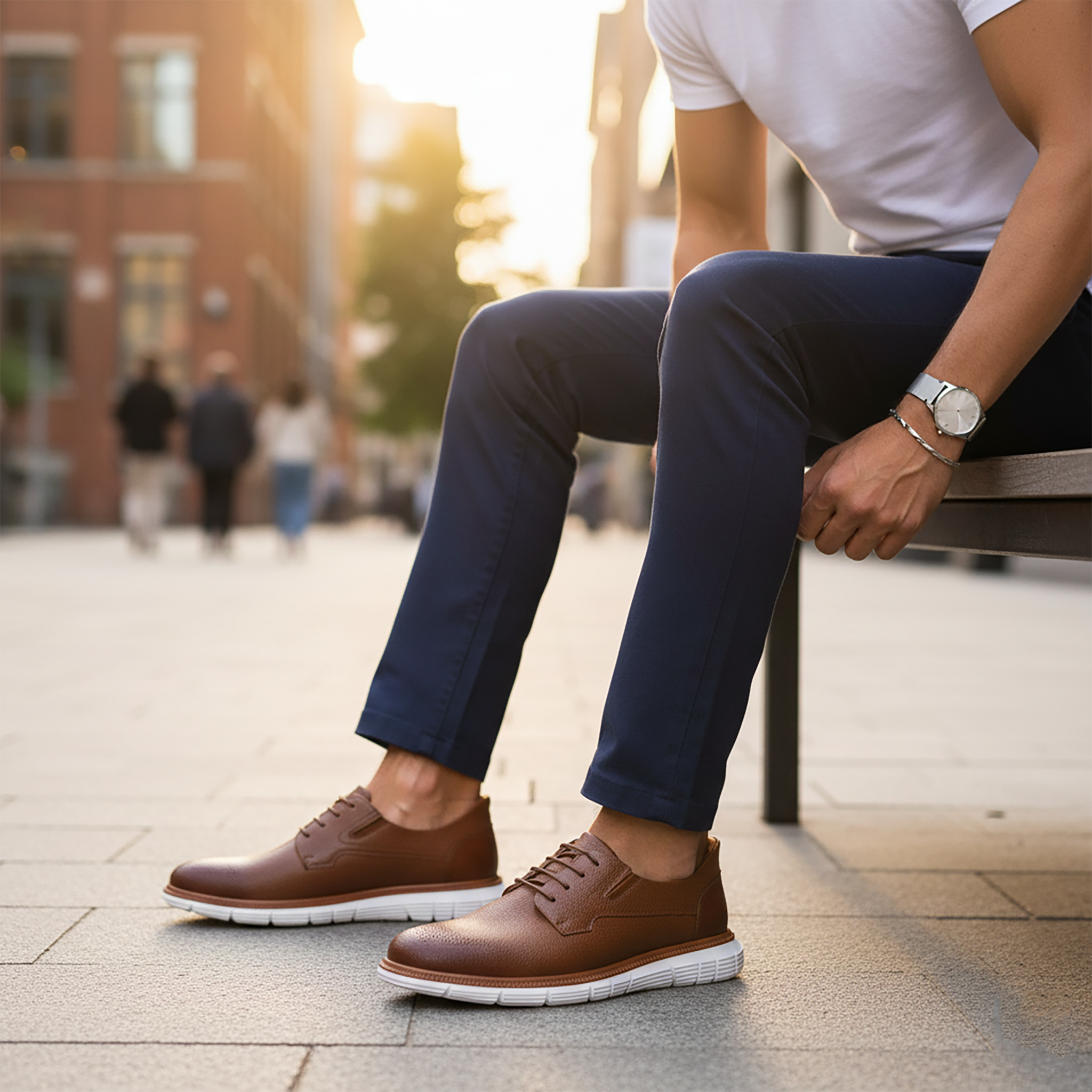 The 'Cloud St' blends timeless derby styling with cutting-edge comfort for the man who won’t settle. Designed with HandsFree technology and elastic laces, it delivers a true step-in-and-go experience—no bending, no hassle. The ultra-light sole gives it an airy, almost weightless feel. Whether you're dressing for a full day at the office or heading out for a smart-casual evening, the 'Cloud St' moves effortlessly with you—refined in look, revolutionary in ease.