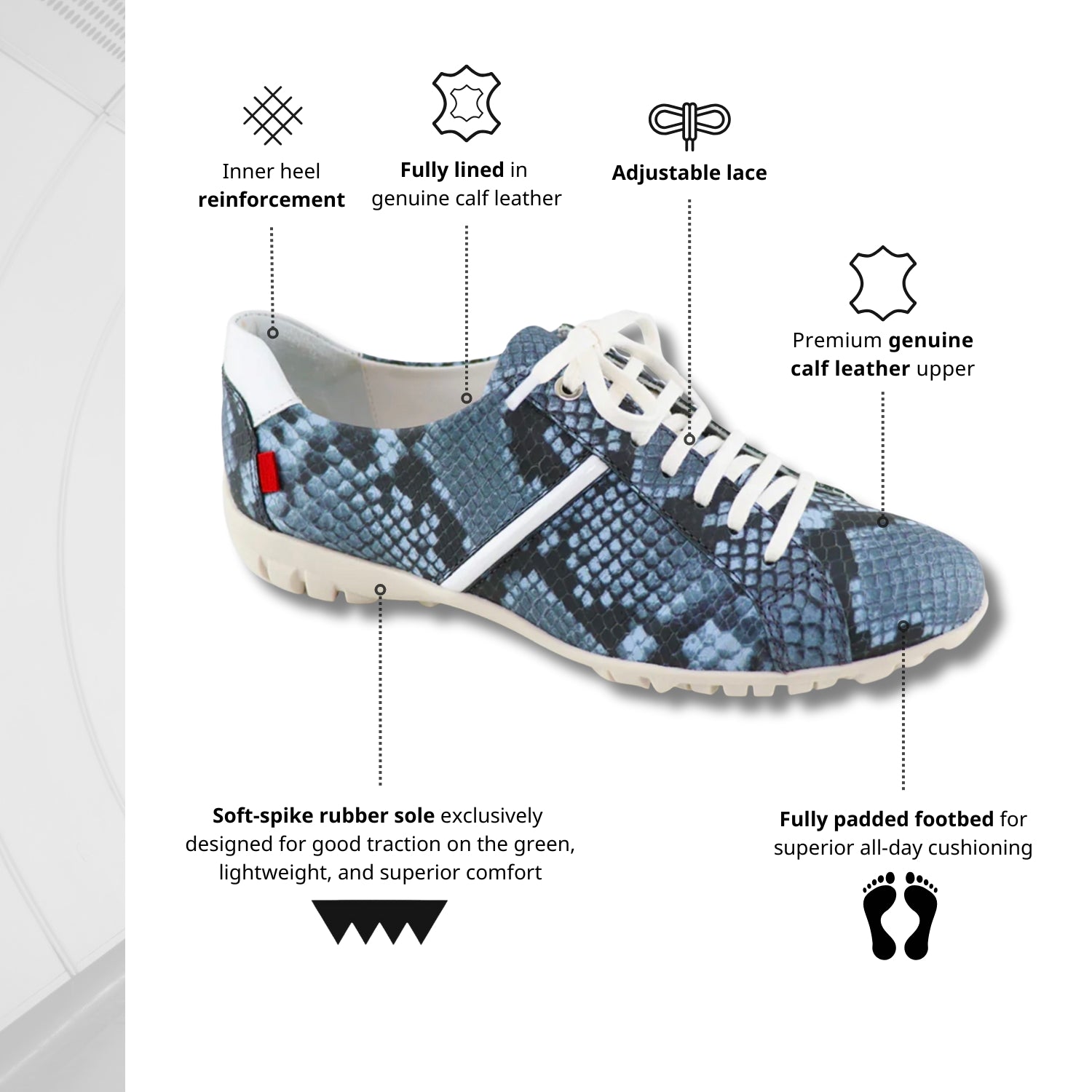 Renowned for our Luxury driving moccasins & Loafers this is a marriage of our expertise in the complex manufacturing technique of moccasins with a full line of Golf shoes. They consist of identical hand stitching & technology used in our Moccasins... but now on a stylish Golf shoe! The articulate, soft spike rubber sole is developed for good traction on the green. Now you have a stylish GOLF MOC to use on or off the course, all with our signature moccasin comfort.