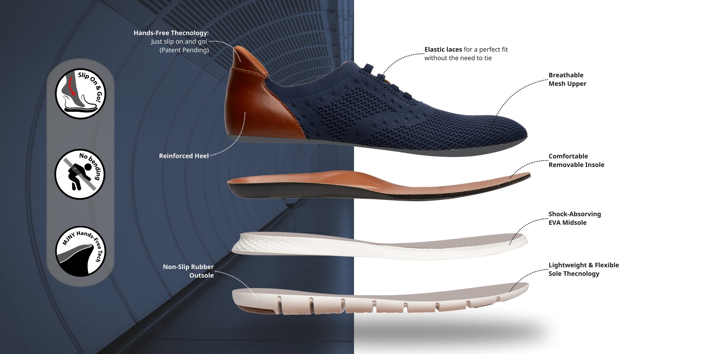 Step into effortless sophistication with the Victory St sneaker, where cutting-edge innovation meets timeless design. Featuring Hands-Free Technology (Pending Patent) and elastic laces, these sneakers deliver a secure, hands-free fit—no bending, no tying, just pure convenience. The breathable knit upper, paired with premium accents, adds a modern edge to your wardrobe. Engineered with a lightweight, anti-slip EVA sole, the Victory St provides supreme flexibility and a weightless feel, ensuring all-day comfort. Whether you're conquering the day or embracing casual downtime, these sneakers move seamlessly with you in style and confidence.