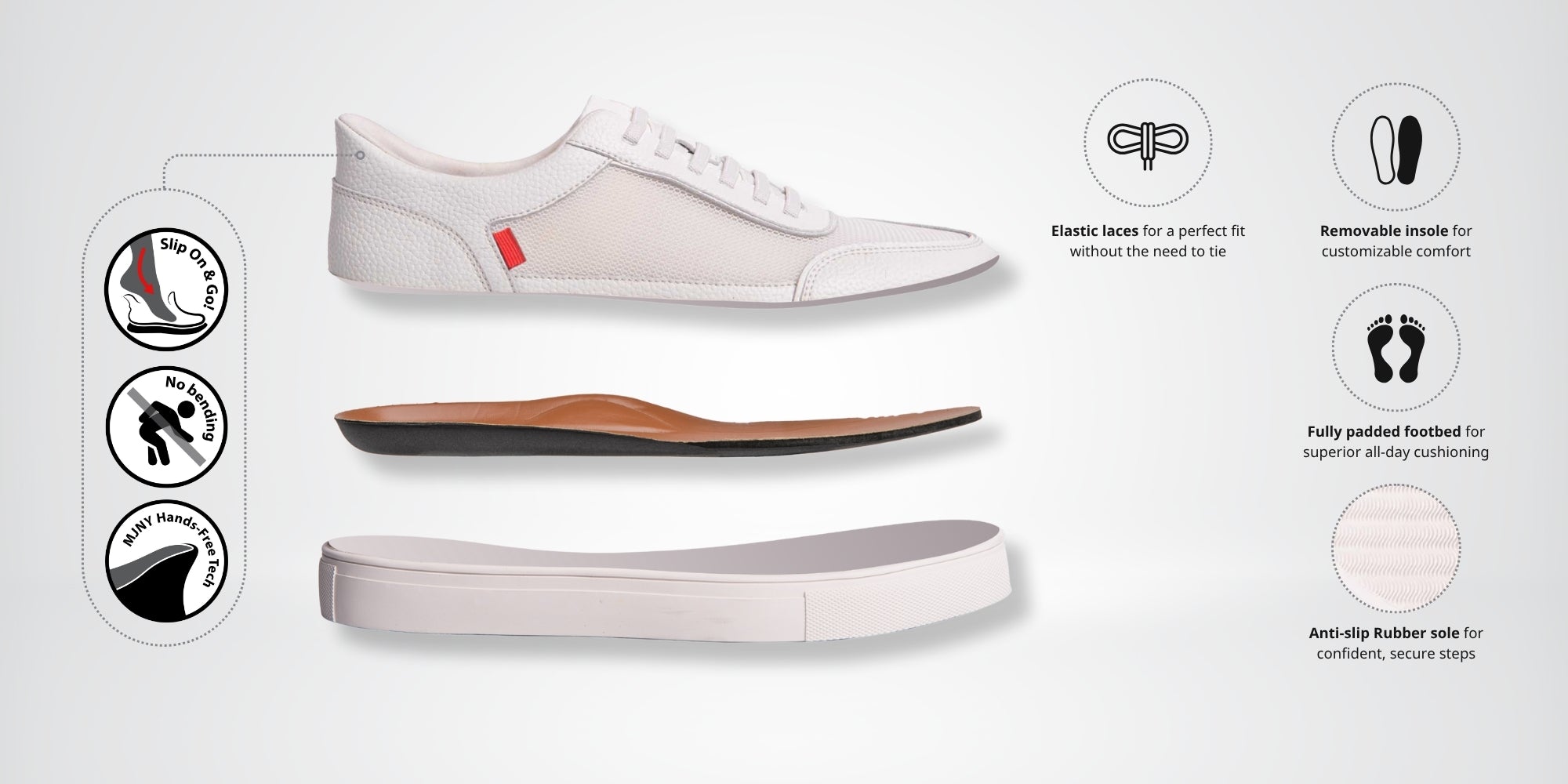 The 'Columbia St' merges classic court sneaker aesthetics with modern luxury and intuitive design. Crafted in genuine calf leather and featuring subtle athletic detailing, it delivers both timeless style and enduring comfort. Its revolutionary hands-free technology (patent pending) lets you step in and out with total ease—no laces to fumble, no hands required. Whether paired with tailored looks or dressed-down essentials, this sneaker is built for the woman who moves fast and demands effortless sophistication at every step.