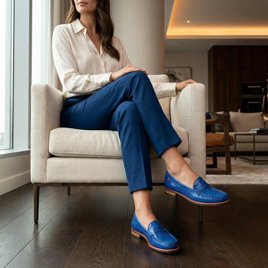 Indulge in timeless sophistication with the 'East Village' penny loafer. Crafted from premium genuine leather, this iconic addition to your wardrobe effortlessly elevates any ensemble. The meticulously designed 3/4 inch stacked heel and resilient rubber sole merge fashion with functionality, ensuring durability and lasting comfort. Immerse yourself in plush luxury as the padded footbed and tailored arch support redefine the essence of refined comfort. Elevate your presence with this unparalleled blend of craftsmanship and elegance, making the 'East Village' an enduring favorite!