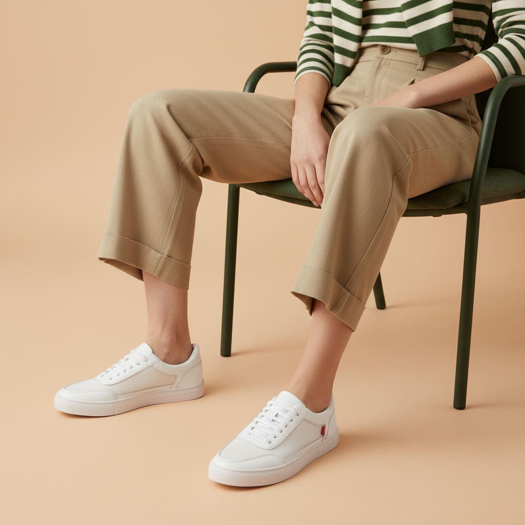 The 'Columbia St' merges classic court sneaker aesthetics with modern luxury and intuitive design. Crafted in genuine calf leather and featuring subtle athletic detailing, it delivers both timeless style and enduring comfort. Its revolutionary hands-free technology (patent pending) lets you step in and out with total ease—no laces to fumble, no hands required. Whether paired with tailored looks or dressed-down essentials, this sneaker is built for the woman who moves fast and demands effortless sophistication at every step.