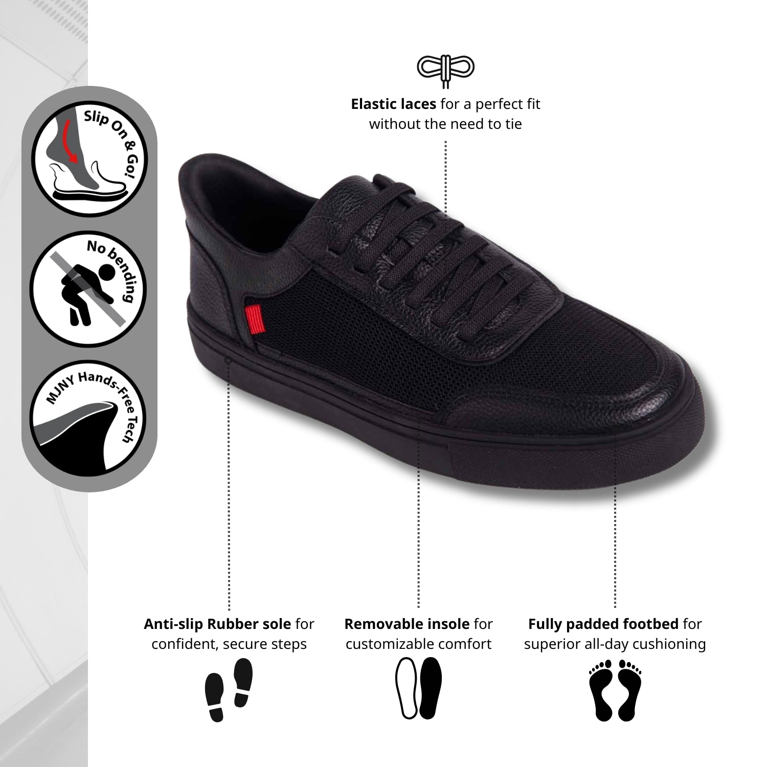 The 'Columbia St' merges classic court sneaker aesthetics with modern luxury and intuitive design. Crafted in genuine calf leather and featuring subtle athletic detailing, it delivers both timeless style and enduring comfort. Its revolutionary hands-free technology (patent pending) lets you step in and out with total ease—no laces to fumble, no hands required. Whether paired with tailored looks or dressed-down essentials, this sneaker is built for the woman who moves fast and demands effortless sophistication at every step.