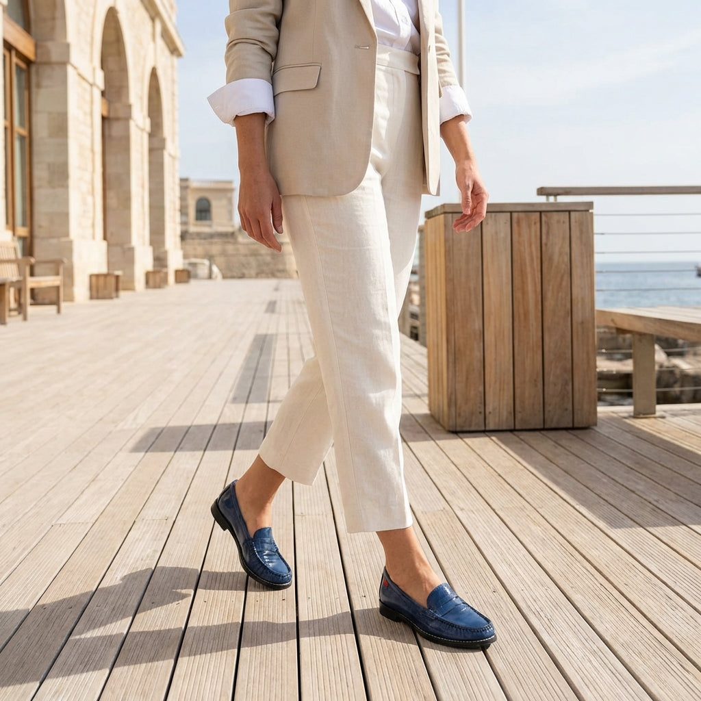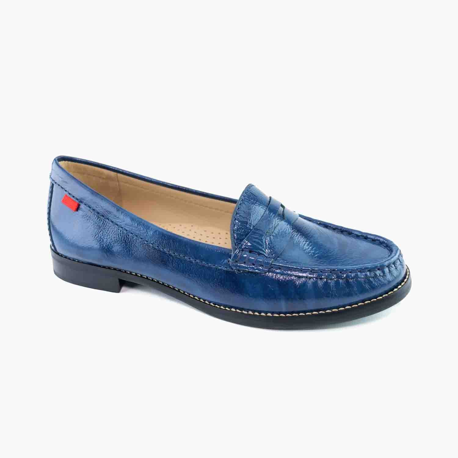 The ‘East Village’ loafer, our best-selling women’s icon, arrives in striking Denim Stained Patent—a rich, dimensional blue with a lustrous, high-gloss finish that captures light with every step. Designed in NYC and handcrafted in Brazil, it reflects a seamless balance of contemporary polish and time-honored artistry. The upper and full lining are crafted from genuine calfskin leather, delivering supple structure, breathability, and enduring refinement.
