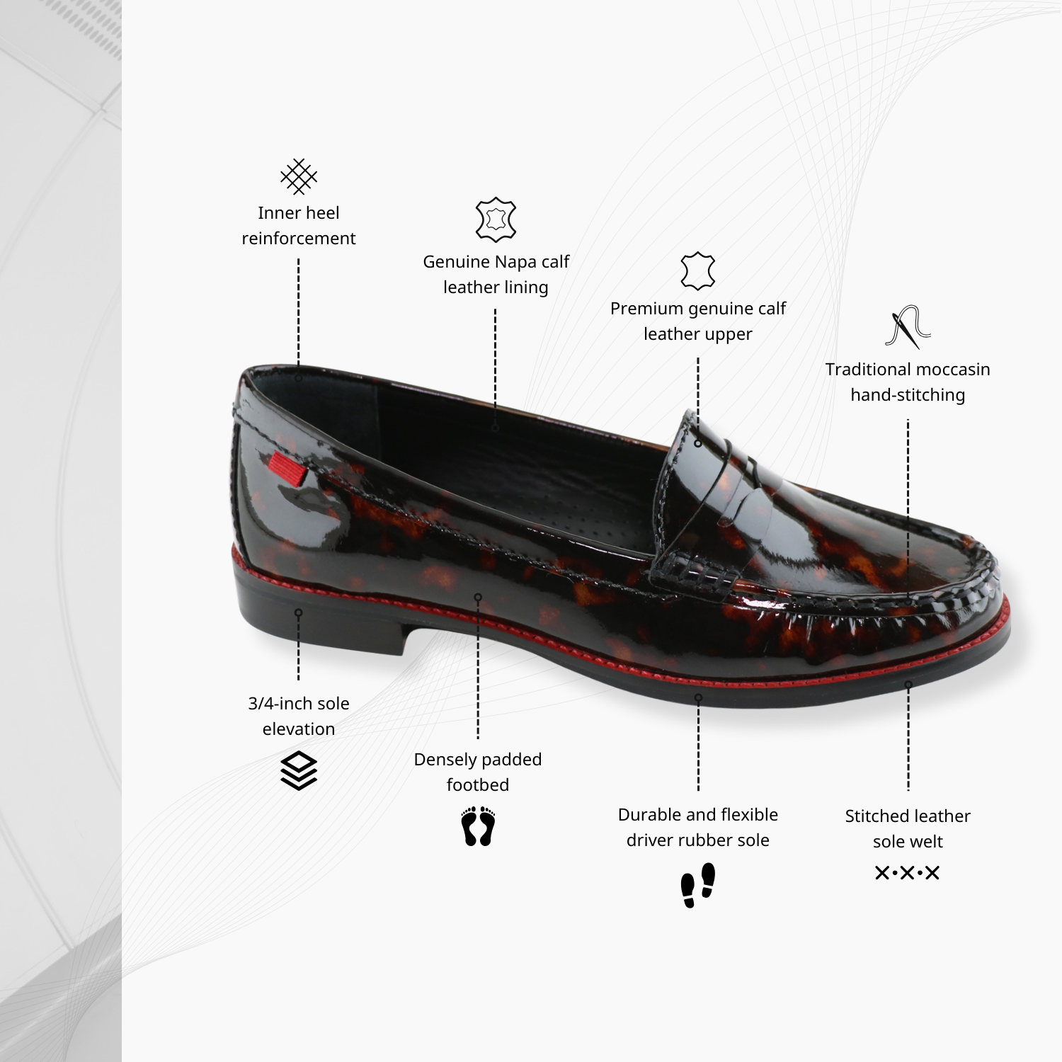 • Hand-stitched leather sole-welt