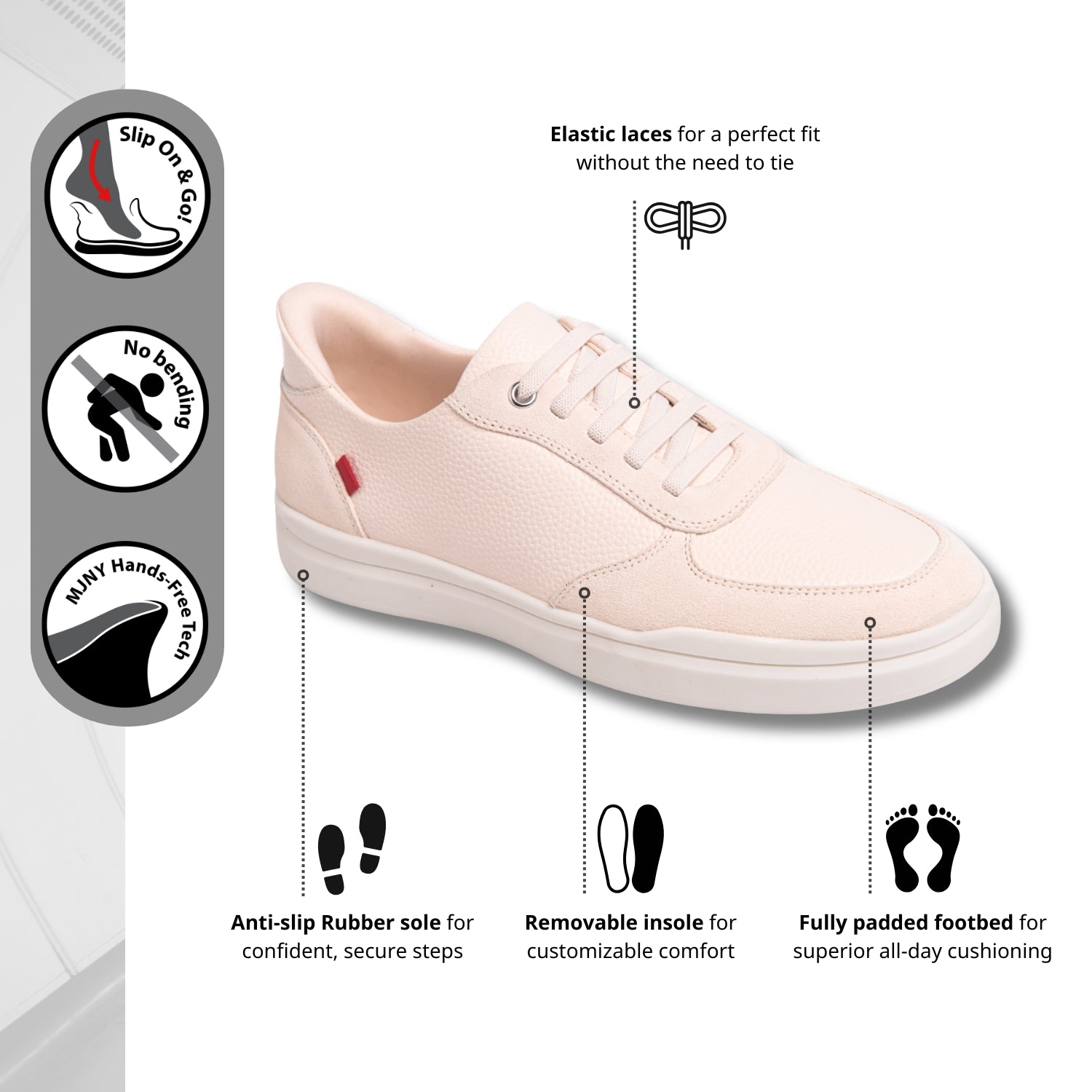 The 'Main St' redefines everyday ease with an elegant twist. Crafted from genuine calf leather and built for hands-free wear, this refined sneaker blends laid-back luxury with clever functionality. Its minimalist silhouette pairs effortlessly with your daily wardrobe, while the easy-on design lets you move seamlessly from morning errands to afternoon café stops. Designed for women who expect more from their casual footwear, it offers lasting comfort and a polished profile—without ever trying too hard. Understated yet elevated, the 'Main St' is how effortless style should feel.