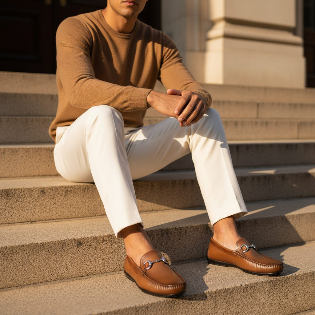 The 'Chambers St' redefines laid-back sophistication with a meticulous blend of form and function. Crafted from genuine calf leather with a full leather lining, this loafer delivers a supple feel inside and out. The moccasin-style hand stitching offers artisanal character, while the gleaming buckle detail adds a refined edge — ideal for elevating both tailored and casual looks. Engineered for lightweight comfort and enduring elegance, it’s a go-to for the discerning man who values craftsmanship as much as effortless style. Luxury, after all, should feel as good as it looks.