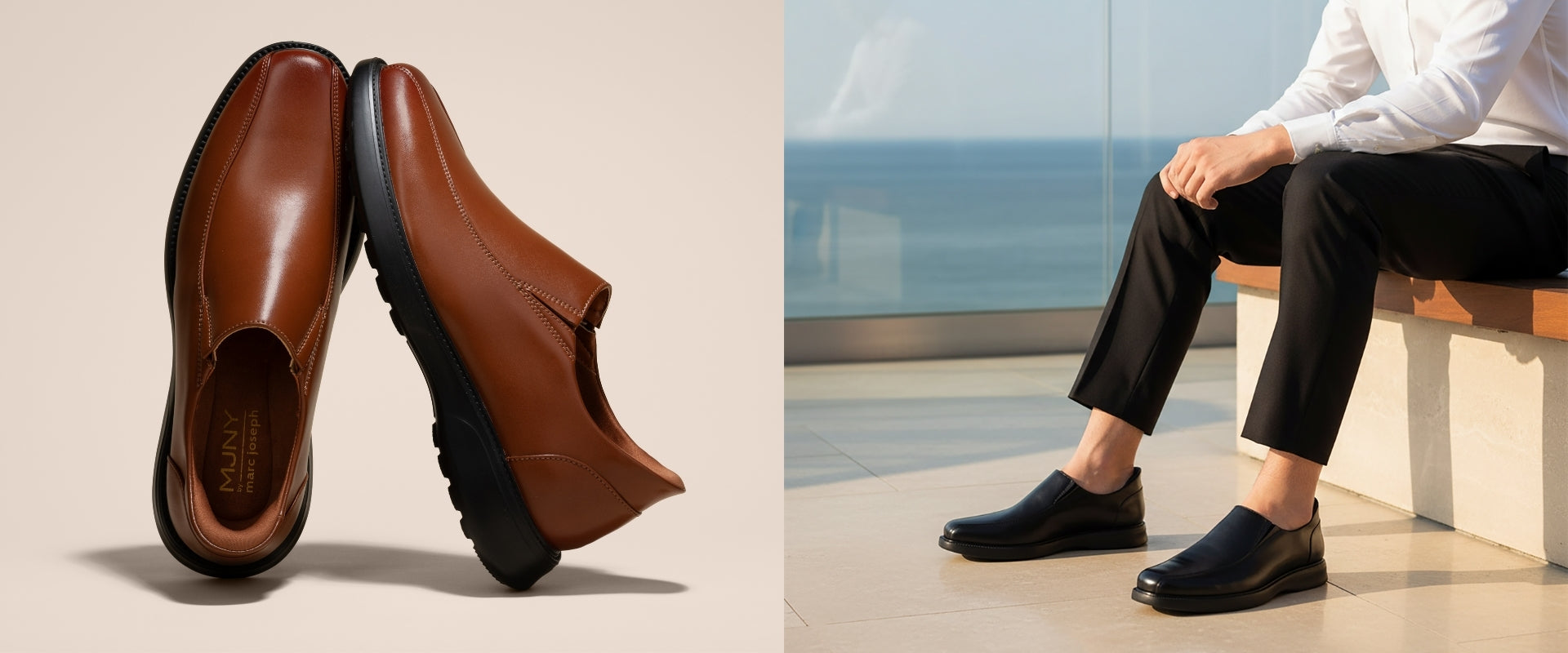 The 'Shelby Rd' redefines the classic slip-on with a sleek silhouette and elevated comfort. Designed with Hands-Free (Patent pending) ease, it lets you slide in and out without a second thought—no tugging, no bending. A lightweight sole brings responsive cushioning and all-day wearability, making it equally suited for business travel or weekend refinement. Wrapped and lined in genuine calf leather, this loafer delivers sophisticated versatility in every detail. It's timeless, effortless, and built for the modern gentleman in motion.