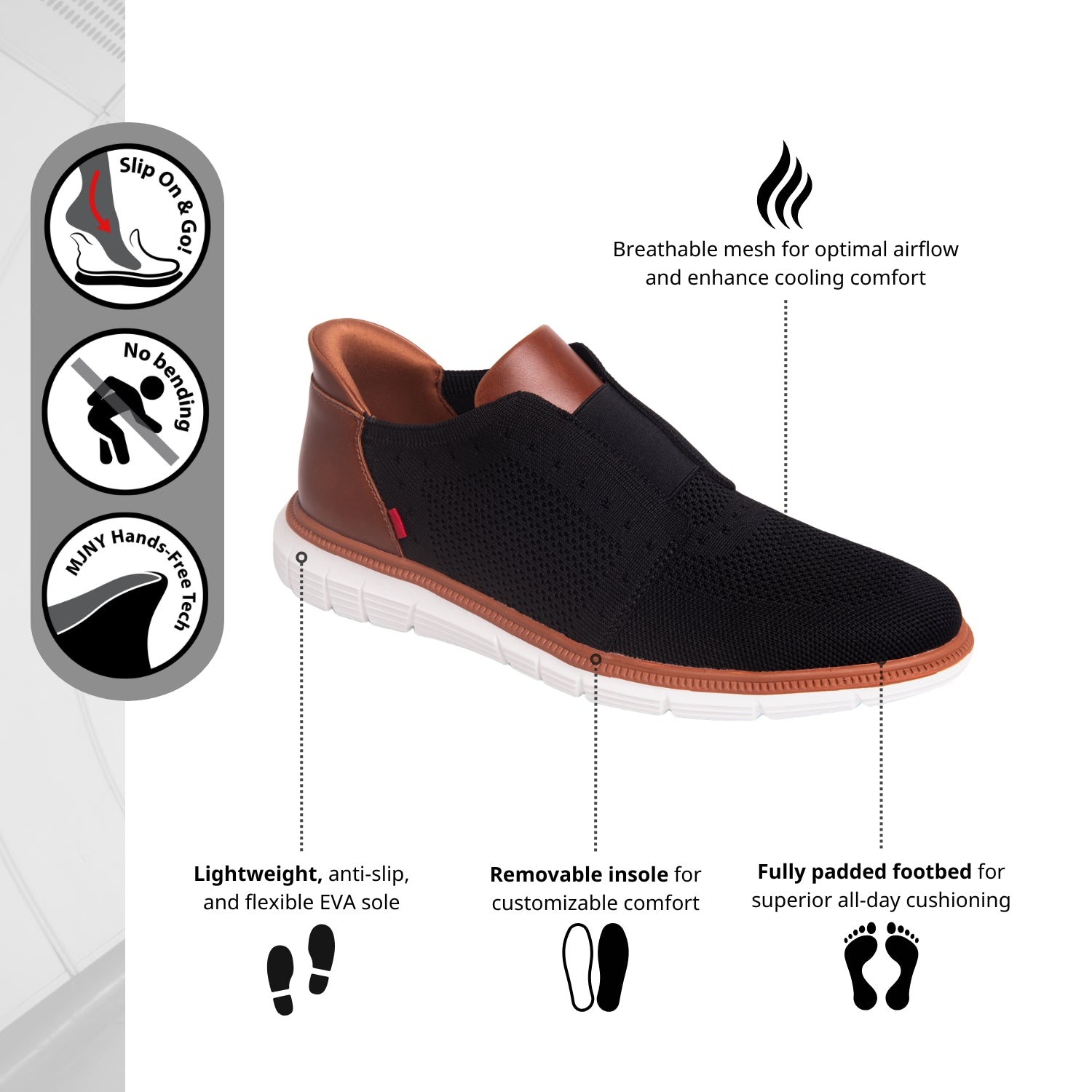 The 'South St' is where timeless sophistication meets effortless innovation. Designed for men who move fast and live sharp, this Hands-Free slip (Patent pending)-on merges breathable mesh with supple genuine calf leather in both the upper and lining—offering flexibility without sacrificing refinement. A feather-light sole adds all-day comfort, while its streamlined silhouette delivers a modern edge. Whether you're catching a flight or heading to brunch, the 'South St' ensures you do it in style—no laces, no hassle, just pure elevated ease. Slip in, stand out.