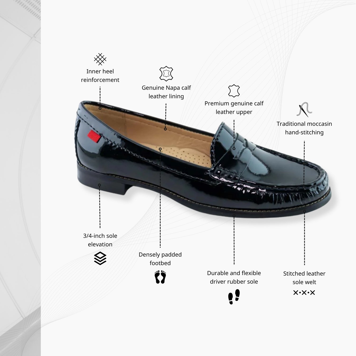 Indulge in timeless sophistication with the 'East Village' penny loafer. Crafted from premium genuine leather, this iconic addition to your wardrobe effortlessly elevates any ensemble. The meticulously designed 3/4 inch stacked heel and resilient rubber sole merge fashion with functionality, ensuring durability and lasting comfort. Immerse yourself in plush luxury as the padded footbed and tailored arch support redefine the essence of refined comfort. Elevate your presence with this unparalleled blend of craftsmanship and elegance, making the 'East Village' an enduring favorite!