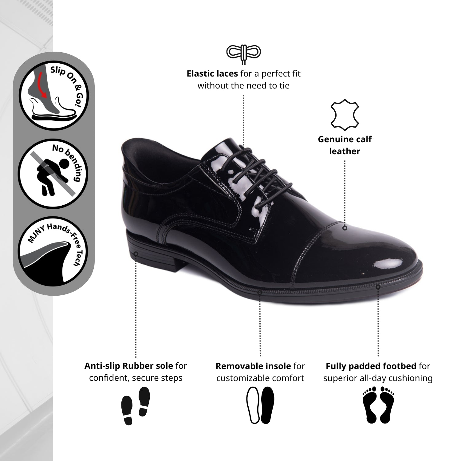 The 'Baker St' is a masterclass in modern sophistication—designed for the gentleman who values effortless elegance. Crafted with genuine calf leather inside and out, it delivers a luxurious feel that molds naturally to your foot over time. What sets this style apart is its discreet Hands-Free Tech and elastic laces—eliminating the need to bend, tie, or fuss. Just step in and go. Whether you're moving through airport lounges or office corridors, this shoe offers polished versatility with the comfort of all-day wear. It’s not just a shoe—it’s a daily upgrade.
