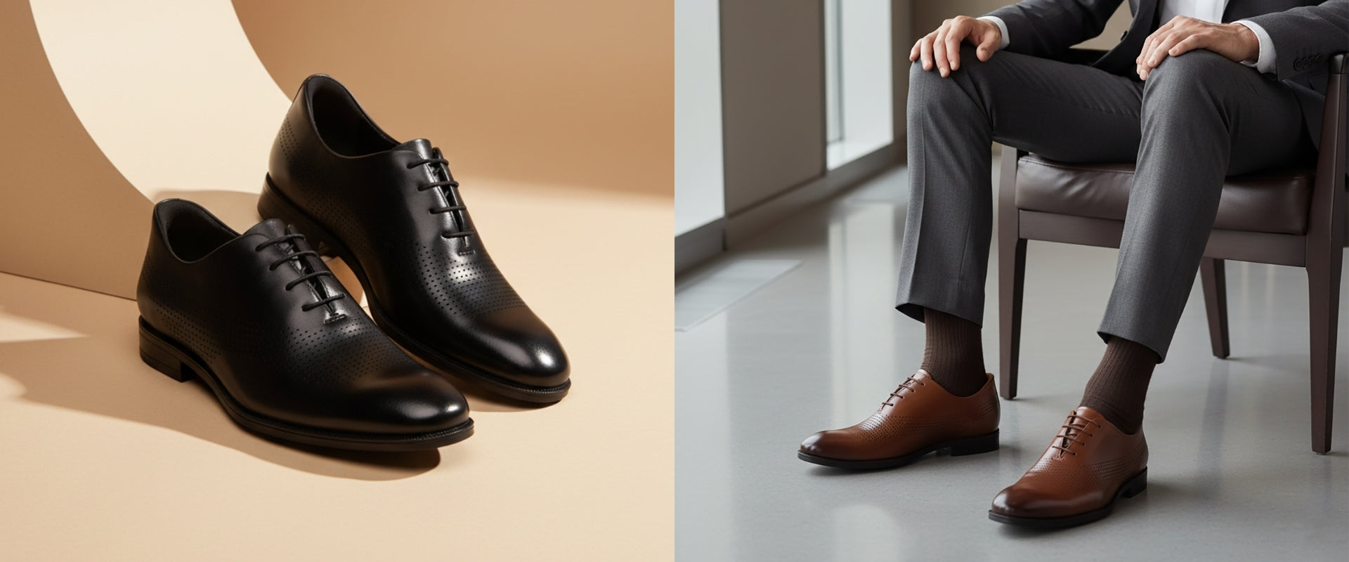 The 'East Rd' is a reimagined oxford for the man who demands precision without the pretense. Its streamlined silhouette is backed by Hands-Free (Patent pending) entry and elastic laces that provide the polish of a classic lace-up with the ease of a slip-on. Perforated detailing adds a refined modern edge, while the genuine calf leather upper deliver breathable luxury. Elegant, efficient, and quietly bold—this is formalwear without friction.