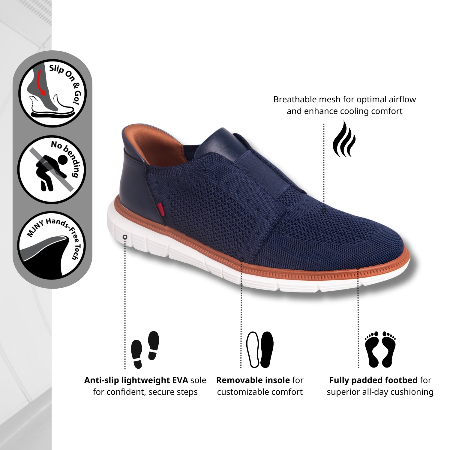 The 'South St' is where timeless sophistication meets effortless innovation. Designed for men who move fast and live sharp, this Hands-Free slip (Patent pending)-on merges breathable mesh with supple genuine calf leather in both the upper and lining—offering flexibility without sacrificing refinement. A feather-light sole adds all-day comfort, while its streamlined silhouette delivers a modern edge. Whether you're catching a flight or heading to brunch, the 'South St' ensures you do it in style—no laces, no hassle, just pure elevated ease. Slip in, stand out.