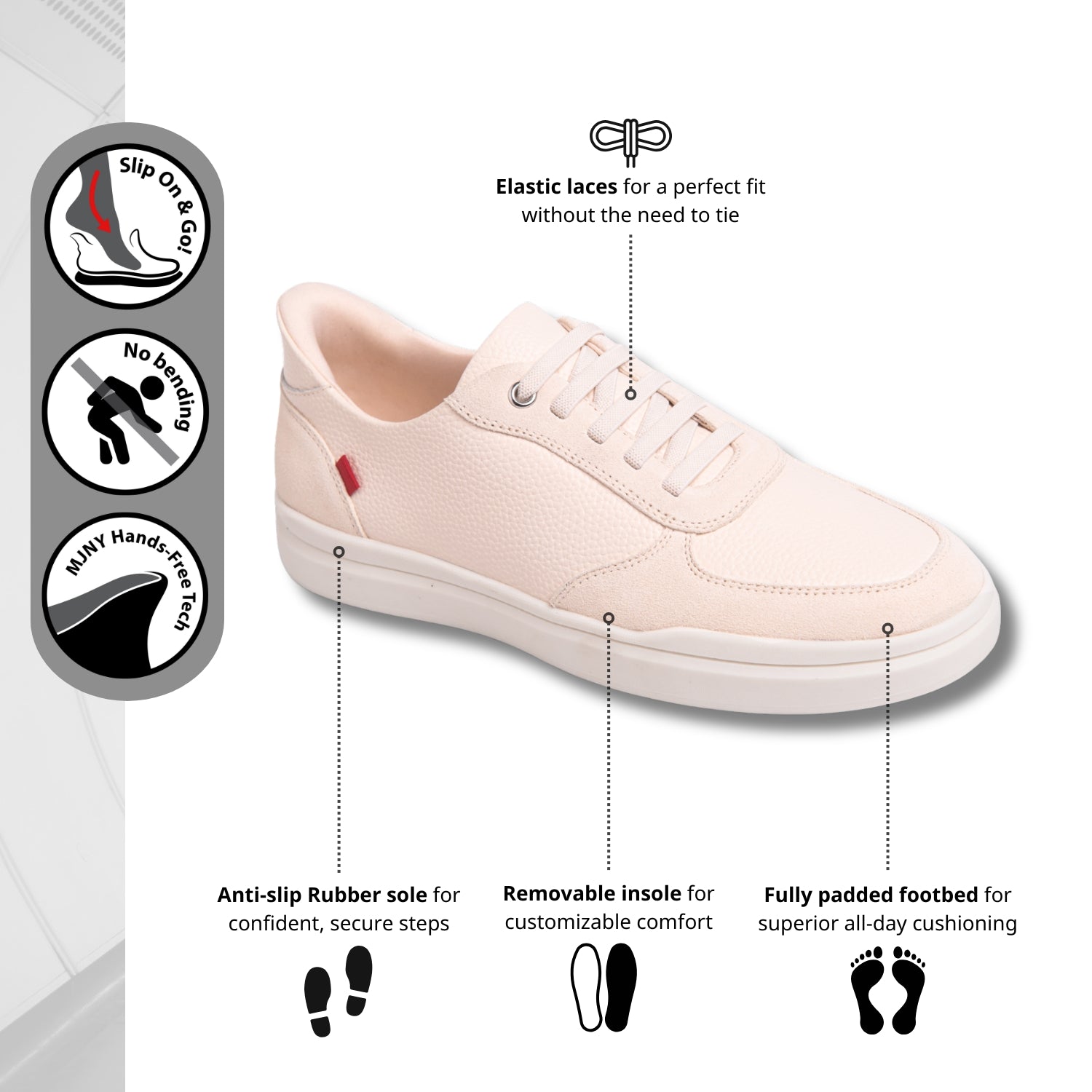 The 'Main St' redefines everyday ease with an elegant twist. Crafted from genuine calf leather and built for hands-free wear, this refined sneaker blends laid-back luxury with clever functionality. Its minimalist silhouette pairs effortlessly with your daily wardrobe, while the easy-on design lets you move seamlessly from morning errands to afternoon café stops. Designed for women who expect more from their casual footwear, it offers lasting comfort and a polished profile—without ever trying too hard. Understated yet elevated, the 'Main St' is how effortless style should feel.