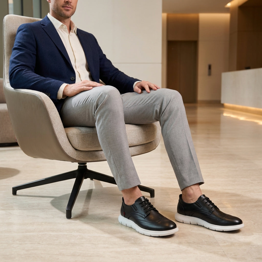 The 'Barnes Ave' redefines modern sophistication with a silhouette that moves as effortlessly as you do. Crafted from genuine calf leather upper, this shoe blends elevated design with cutting-edge ease. The feather-light sole delivers cloud-like comfort without sacrificing style, while the innovative hands-free tech (patent pending) lets you step in and go — no bending, no fuss. It’s the kind of everyday luxury that quietly outperforms, designed for men who expect more from their footwear. This is style, reimagined for the pace of today.