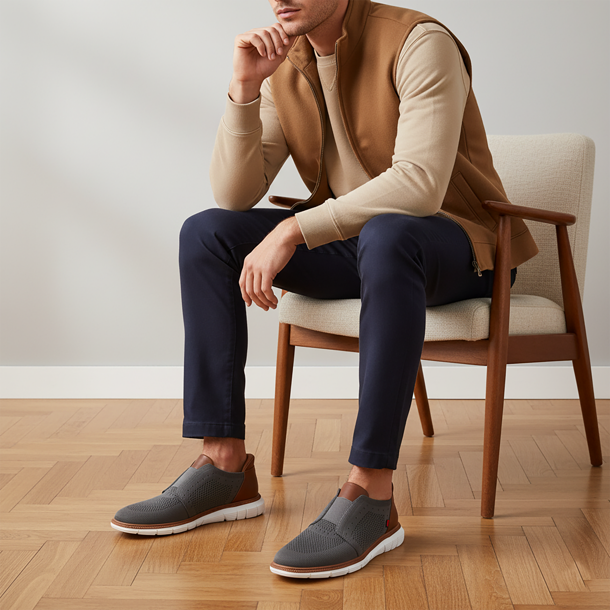 The 'South St' is where timeless sophistication meets effortless innovation. Designed for men who move fast and live sharp, this Hands-Free slip (Patent pending)-on merges breathable mesh with supple genuine calf leather in both the upper and lining—offering flexibility without sacrificing refinement. A feather-light sole adds all-day comfort, while its streamlined silhouette delivers a modern edge. Whether you're catching a flight or heading to brunch, the 'South St' ensures you do it in style—no laces, no hassle, just pure elevated ease. Slip in, stand out.