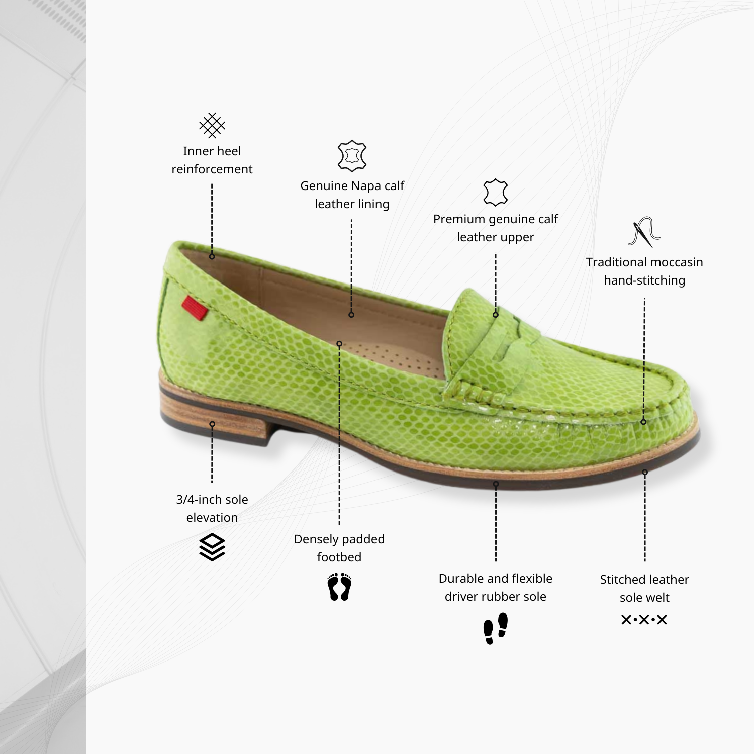 Indulge in timeless sophistication with the 'East Village' penny loafer. Crafted from premium genuine leather, this iconic addition to your wardrobe effortlessly elevates any ensemble. The meticulously designed 3/4 inch stacked heel and resilient rubber sole merge fashion with functionality, ensuring durability and lasting comfort. Immerse yourself in plush luxury as the padded footbed and tailored arch support redefine the essence of refined comfort. Elevate your presence with this unparalleled blend of craftsmanship and elegance, making the 'East Village' an enduring favorite!