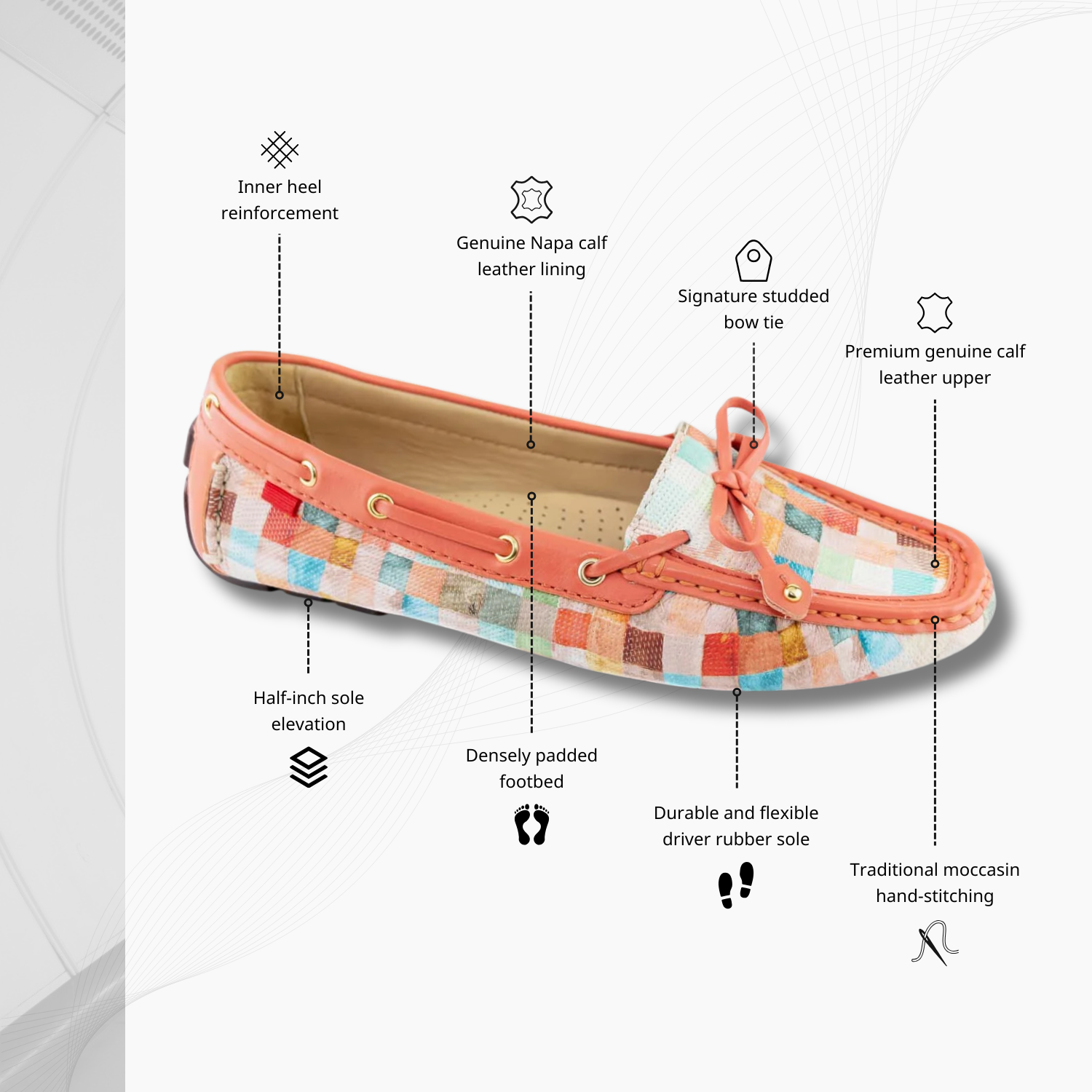 Our iconic Cypress Hill featured in genuine leather provides a sophisticated & elegant touch. Due to its popularity, many of these are stocked all year with various colors seasonally refreshed. As our #1 seller, this is the shoe you want to own several of and update seasonally as well. A densely padded footbed and flexible rubber driver sole provide for unmatched comfort & walking traction. With Cypress Hill’s sleek shape & fit along with its tie-bow detail, you have the opportunity for all-day comfort with style!