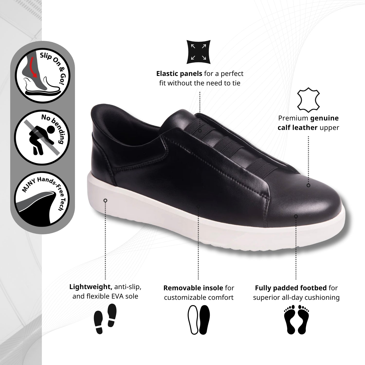 • Hands-Free tech (patent pending): slip-on, no bending, no heel-crush