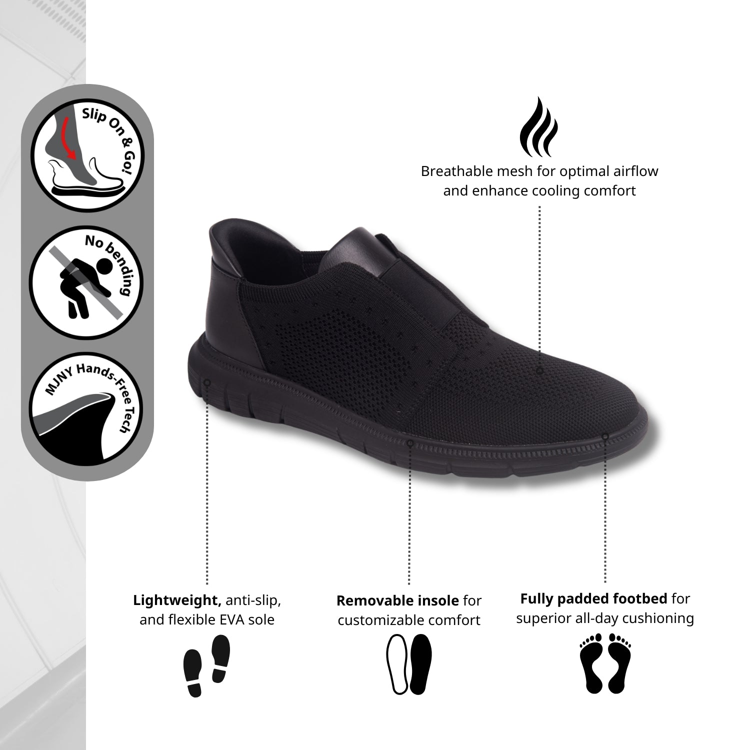 The 'South St' is where timeless sophistication meets effortless innovation. Designed for men who move fast and live sharp, this Hands-Free slip (Patent pending)-on merges breathable mesh with supple genuine calf leather in both the upper and lining—offering flexibility without sacrificing refinement. A feather-light sole adds all-day comfort, while its streamlined silhouette delivers a modern edge. Whether you're catching a flight or heading to brunch, the 'South St' ensures you do it in style—no laces, no hassle, just pure elevated ease. Slip in, stand out.