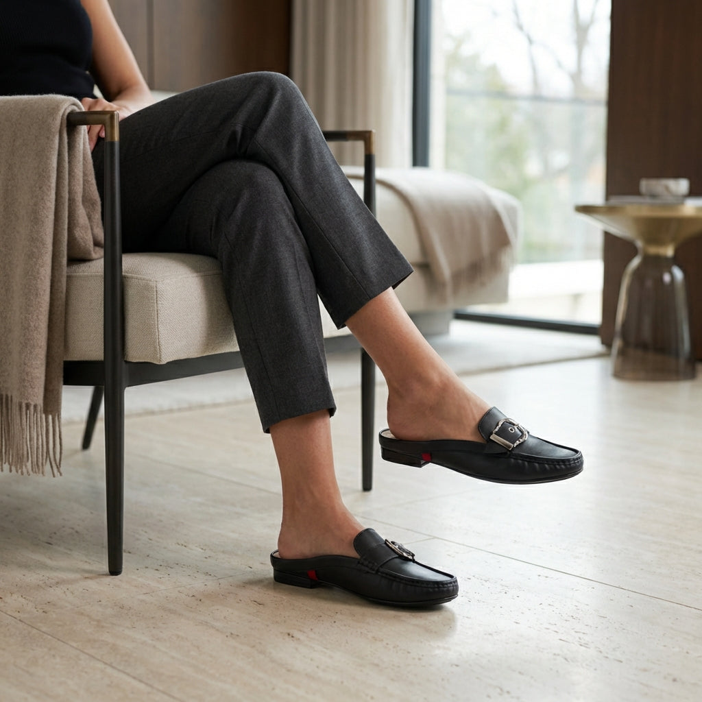 The 'Barbara St' is the epitome of refined ease—designed for women who demand elegance without sacrificing comfort. Crafted with genuine calf leather in both the upper and lining, this luxe mule delivers a supple, glove-like feel from the first wear. The ornamental buckle adds a tasteful edge, subtly elevating any outfit from casual brunch to city strolls. Slip-on styling ensures effortless sophistication, while every detail is engineered to offer lasting comfort and a polished silhouette. The 'Barbara St' redefines everyday luxury—where understated glamour meets artisan craftsmanship.